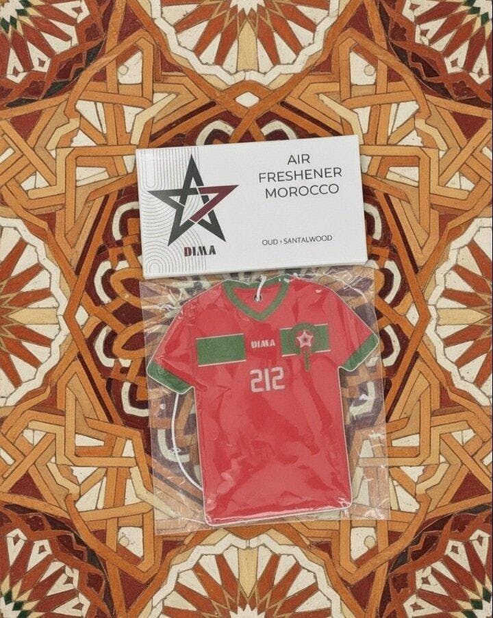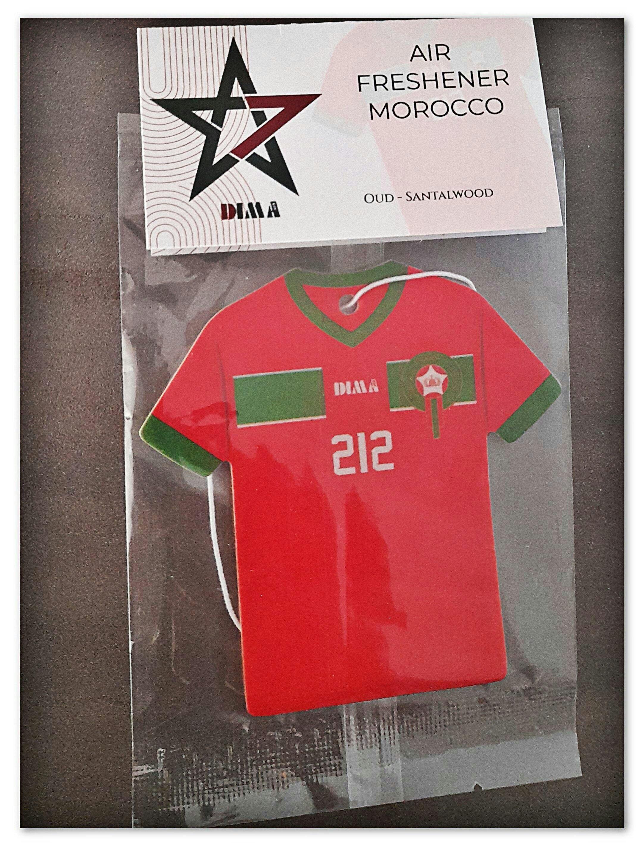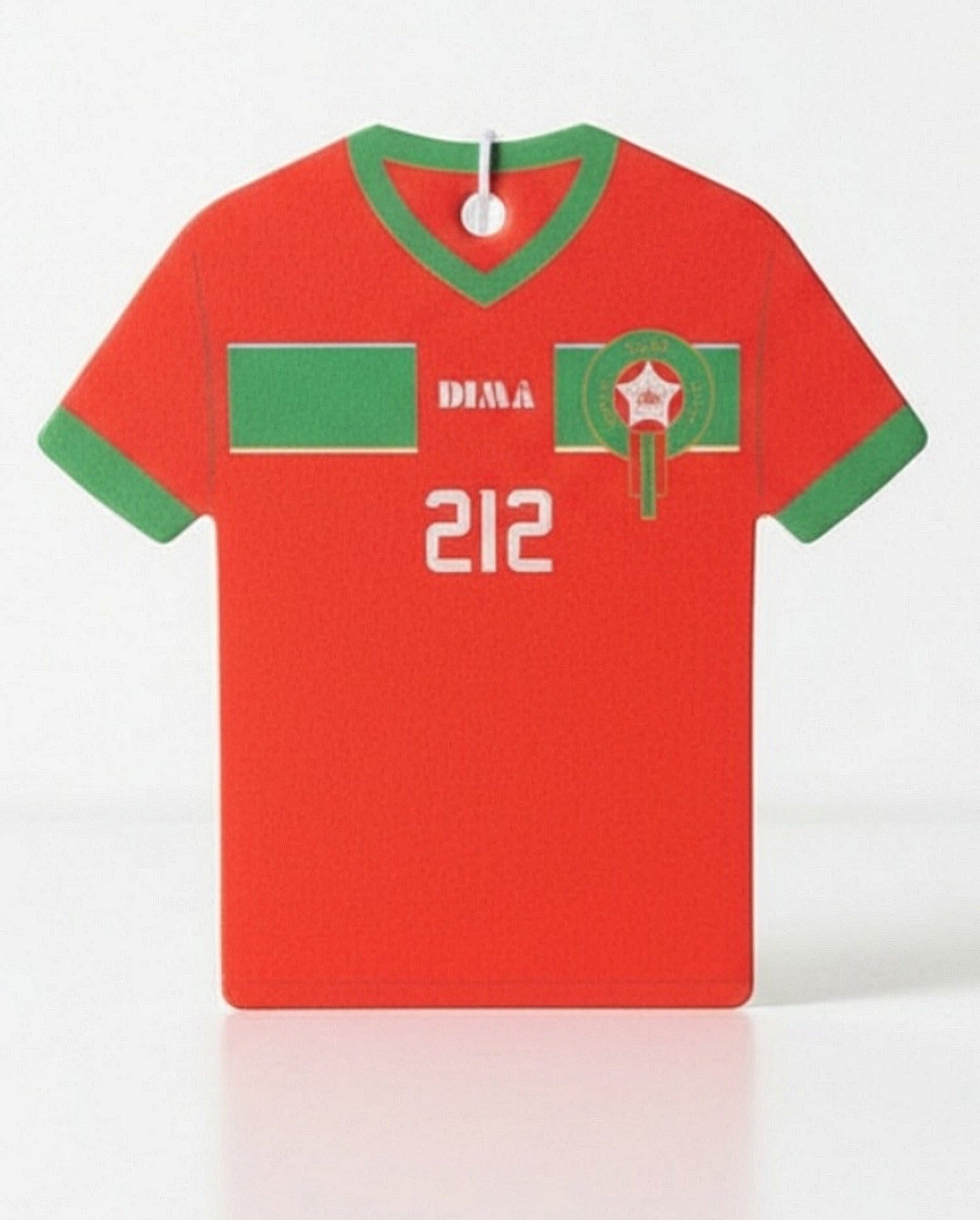 Vêtu des teintes du maillot national, ce produit diffuse une senteur oud-santal fraîche (style Bois Marocain de TOM FORD) qui enveloppe votre véhicule d'une ambiance chaleureuse et authentique.